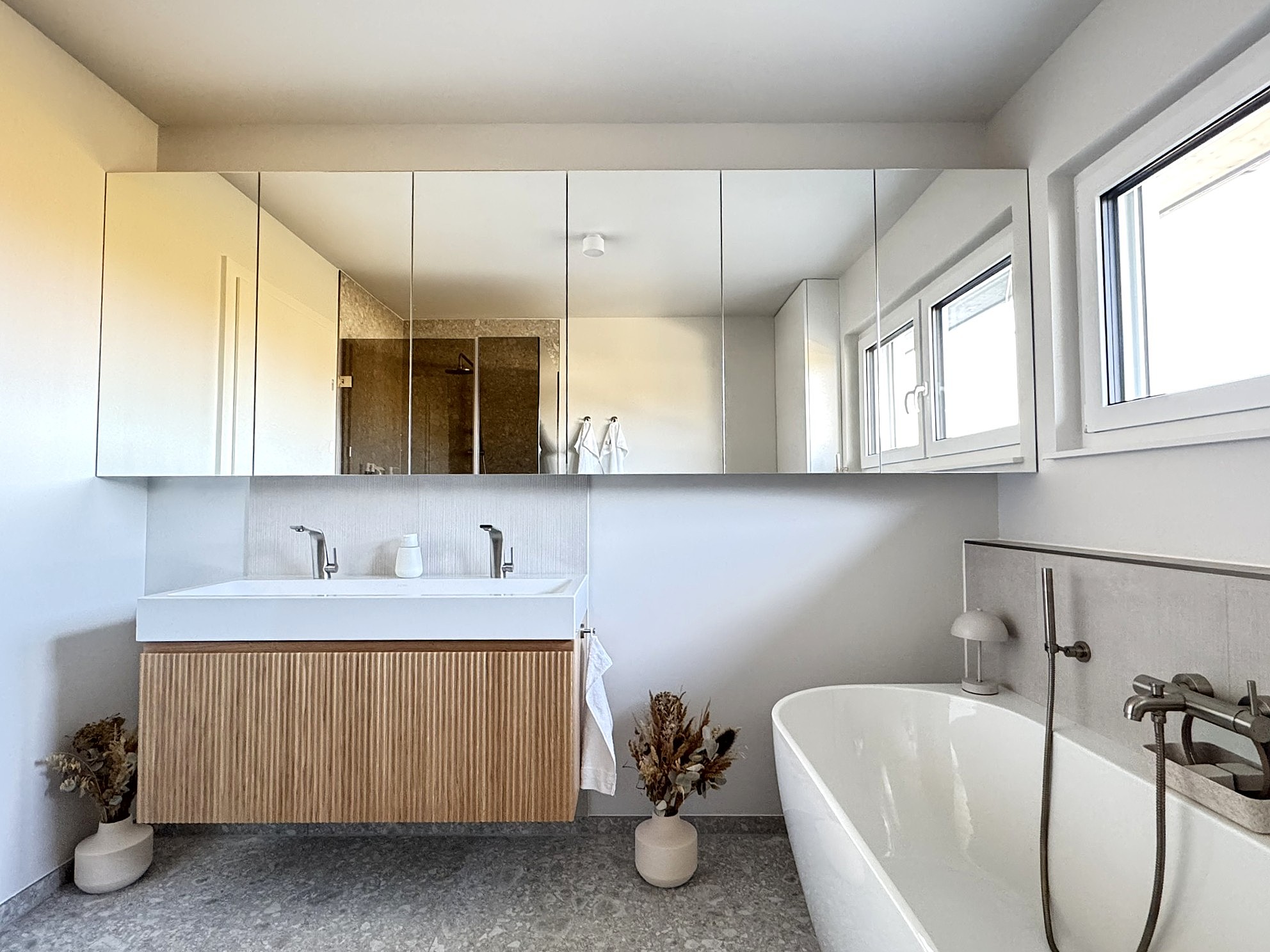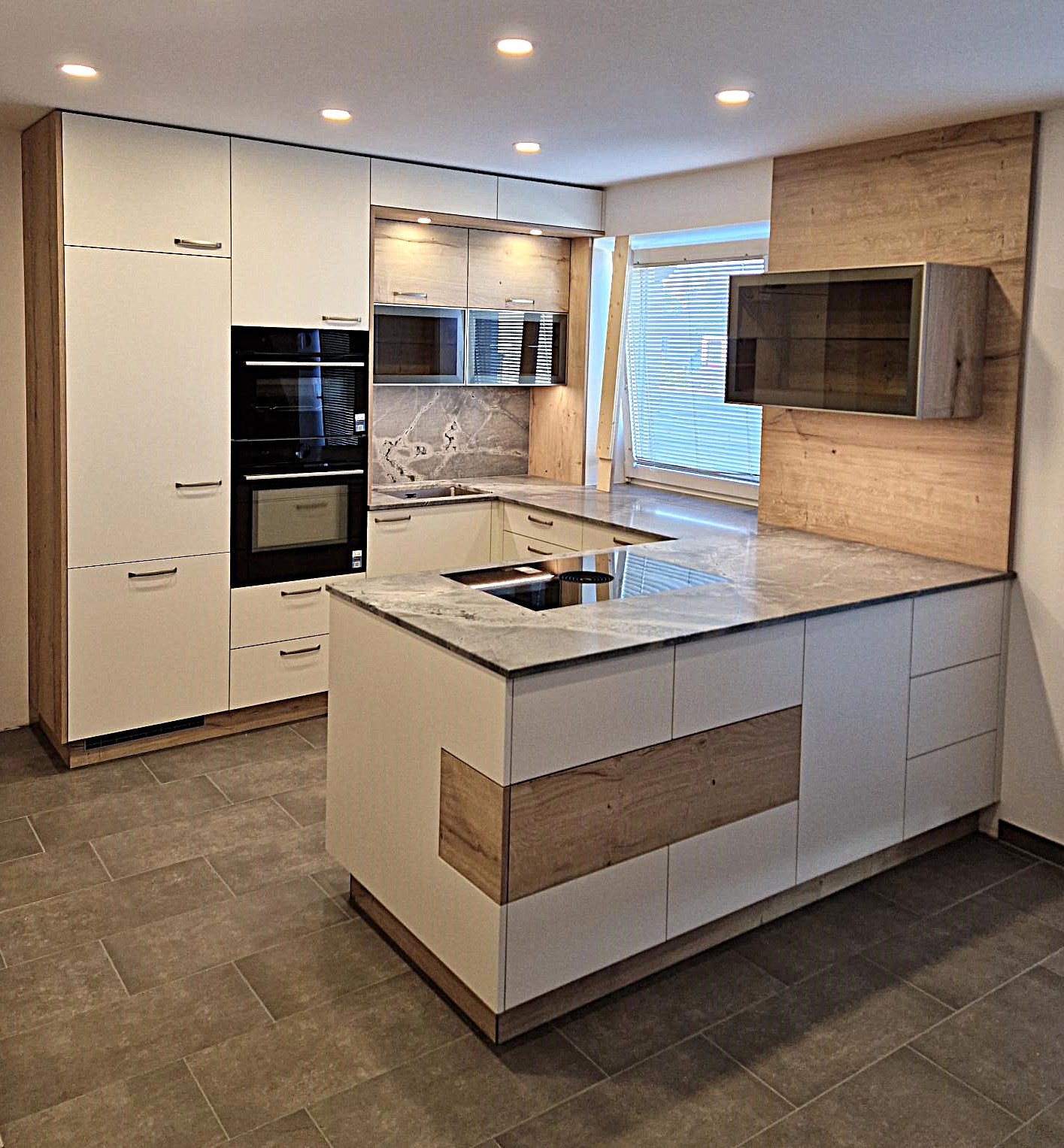 In unserer Tischlerei im Waldviertel vereinen wir kreatives Design, detailgetreue Planung und professionelle Umsetzung für dein Zuhause. Vom Eingangsbereich bis zum begehbaren Kleiderschrank realisieren wir deine Einrichtungswünsche und Ideen, sodass du dich rundum wohlfühlen kannst. Egal ob Möbel, Türen, Böden, Fassadengestaltungen, Glasabsturzsicherungen, freischwebende Treppen oder Badewannenverkleidungen – wir fertigen es individuell für dich an